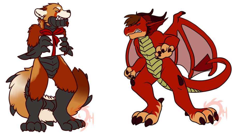 Image 3: Raux, the red panda/dragon, and me, in my dragon form, are fighting over a mysterious gift during Crim's party.