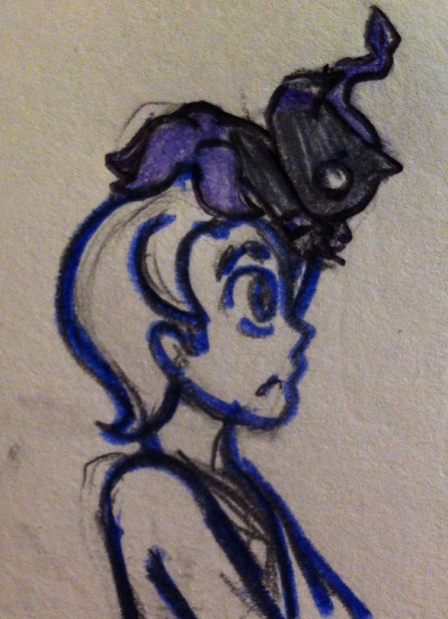 "Squish not now." Jay firmly told the young creature on his head as he worked on blue prints. But the small patting of hands on his forehead didn't stop. The blue ninja groaned and glanced up at the small child on his head. Squish smiled and squealed once he looked up at her and stopped patting his forehead. He then went back to work only to feel the taps again. Apparently Squish just wanted attention and would keep doing this until the blue ninja realized it.