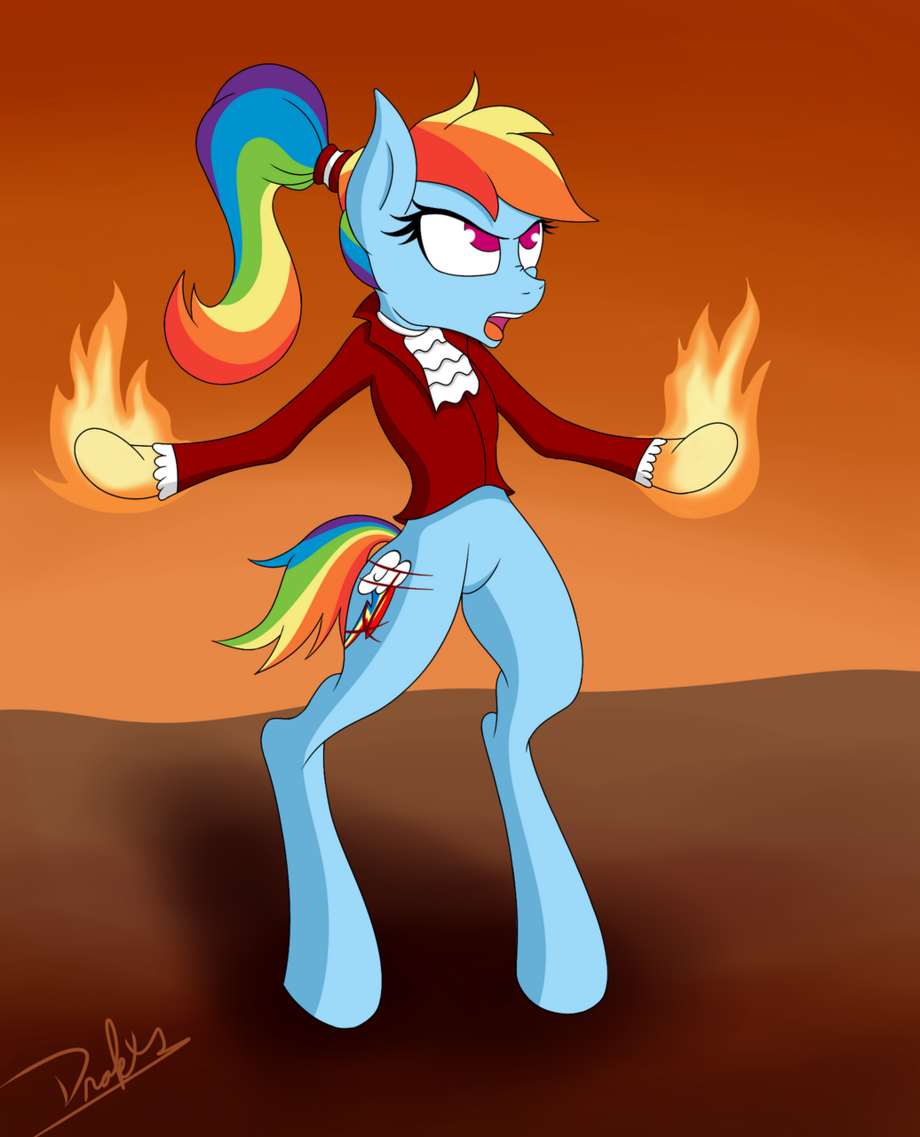 This pic was inspired by the animatic 'Hell to Your Doorstep' by Ink Potts based on ‘The Count of Monte Cristo Musical’. I started it a while ago but only now got a few time to finish uncompleted works. You may notice she does not look exactly like in the video, I just took a bit of artistic licence there. Also experimented with new style types for bipedal ponies.