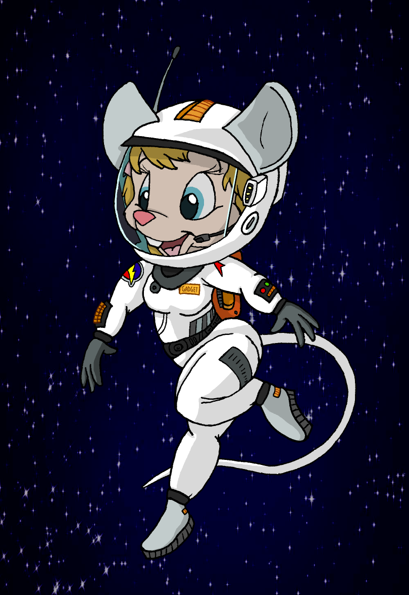 I admit it; I've got a bit of a spacesuit fetish. Dunno why! I just think toons look super-cute in 'em. Needless to say, that scene in "Out To Launch" where Gadget's floating about in her improvised latex glove spacesuit made mountains of little red cartoon hearts pop out of my head when I was a kid.
