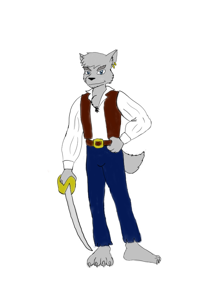 Okay, there's a new Facebook community called "Character Design Challenge" that's open to artists of all skill levels. The concept is simple: every month there's a new theme, and artists are invited to create a character picture to fit the theme and submit it. This month's theme is Pirates, and here is my submission, a wolf pirate.