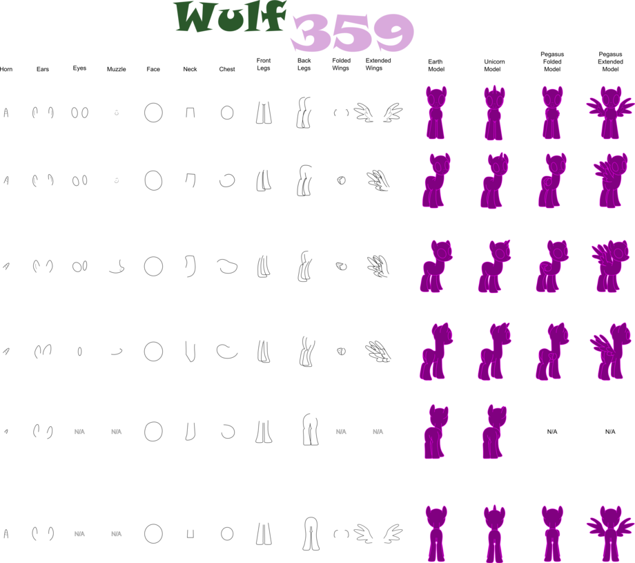 After MANY hours of work, this reference sheet is now as complete as I plan to make it. This is NOT freehand drawn, but rather each element was traced and compared / modified with many freeze frames of season 1 of MLP FIM by hand using a vector drawing program.