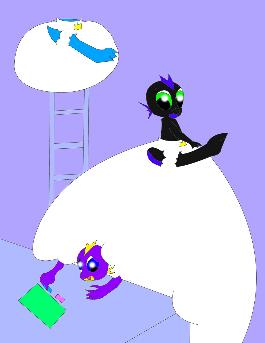 As you can see, this soon gets out of hand. I suffer the worst incontinence and my diaper fills up most of the room, almost crushing Casval, who is working the controls. Paden, meanwhile, is trying to climb up into the next floor, but he can't get through the hatch due to his bloated bum. Can the crew repair the shielding and make their ship livable again? Is this inspired by that one episode of Transformers Beast Wars where the Axion's shielding was disabled and the Maximals had to remain in their animal forms? I don't know the answer to the first 2 questions, the last one is yes.
