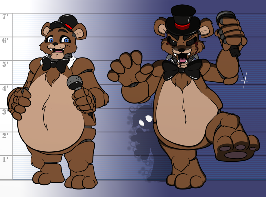 A little work in progress of the night version of the Freddy Fazbear crew, and to show how the design works for my impressions of Five Nights at Freddy’s when he’s active and roaming.