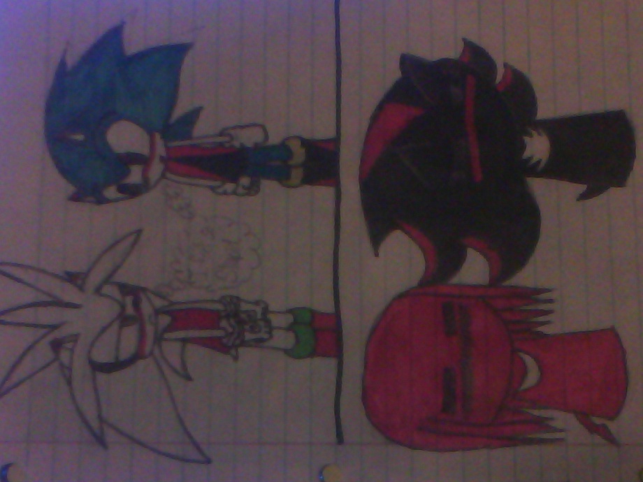 I know it looks kinda bad but hey its the best I can do kay? I mean I don't know what knuckles and shadow clothes looks like for girls I don't knownbut hope you guys like then drawing and I'm sorry it the picture is to the side i don't have laptop so my using my tablet so some pictures well be turn to the side just letting y'all know now