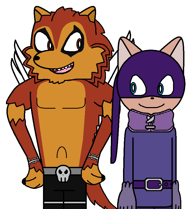 Here are two of the Doom Raiders, Wolfgang and Nightshade. I like these two a lot, and I found them both attractive. I see them being great friends, despite the fact that Nightshade gets irritated by Wolfgang's music sometimes. I also shipped them as a yaoi couple! ^^