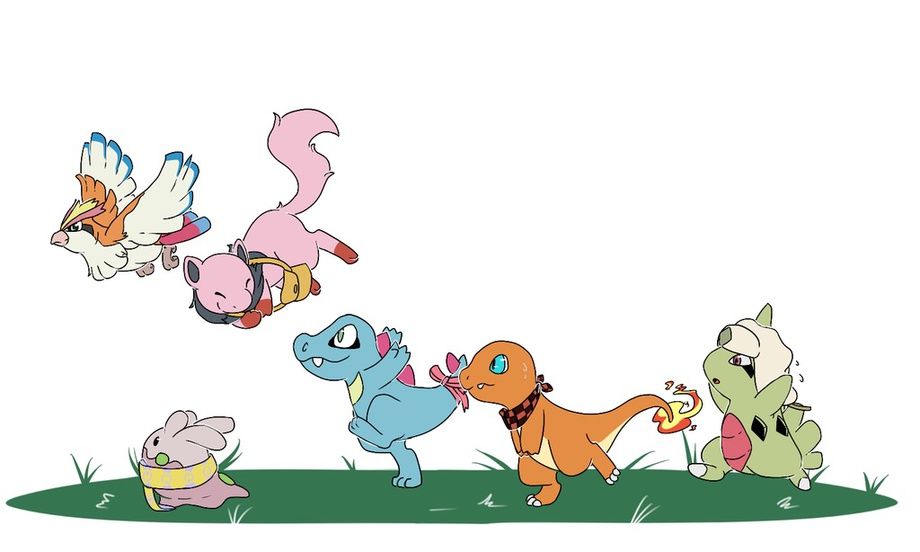 Left to right, pidgy - Ven, goomy - pen, mew - lucas, totadile - ran, charmander - ingniculase, lavitar - Belmont
