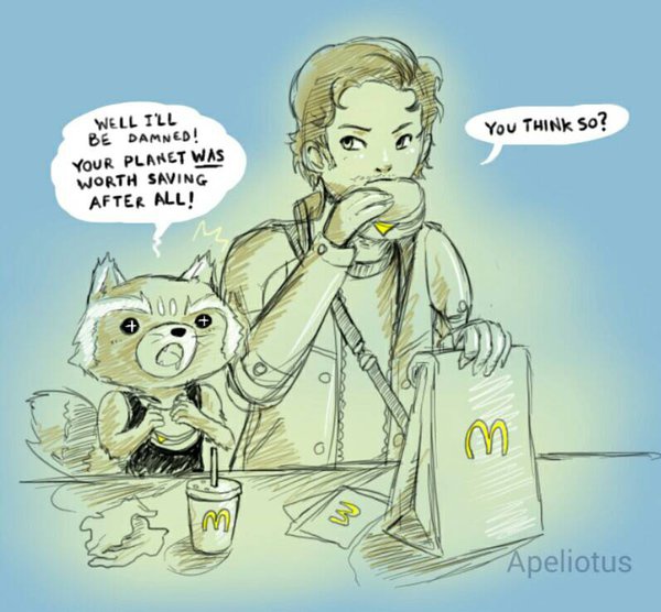 Wanted to explore the idea of the Guardians visiting Earth after saving it. Rocket redefines the meaning of eating garbage.