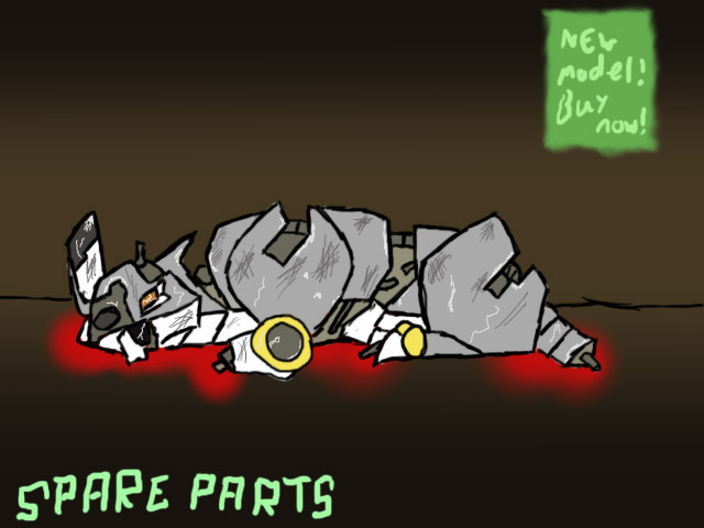 the backstory behind this was I'd gotten cheated on in a really shitty way by my GF at the time and it broke me really badly, it left me very pent up upset and just feeling broken, Cybertalyn was initially an expression of my feelings of being broken and wanting to be something that could neither feel pain or take alot to fix, it also amuses me that the first instance of my mecha-sona would be him in a back alley having been torn apart for spare parts.
