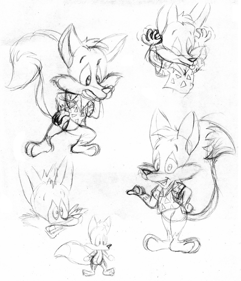 Next I tried to do Alex displaying a wild take, then Alex making a mildly rude gesture. Lastly I drew that little Tailslike doodle at the very bottom. It should be noted i was only going for a head-to-body proportion comparison (Since the Tiny Toons really do have minuscule bodies compared to their gigantic heads), and I drew it by lava lamp light as well.