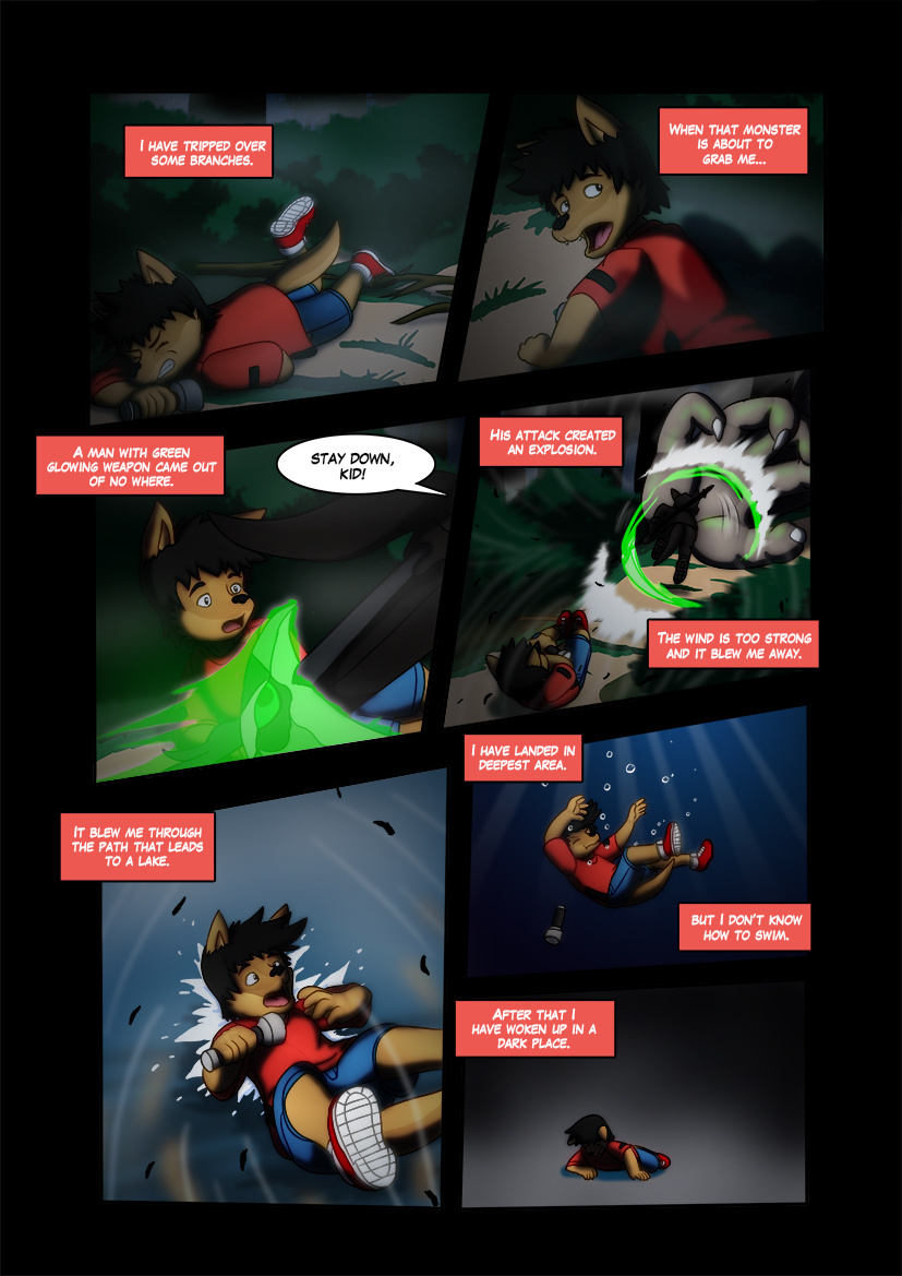 About to be taken or eaten, a stranger had burst in and saved Joey... I think. Let's hope he can get out of the water, cause fire starters at youth have hard time swimming since energy is consumed as water weaken fire.