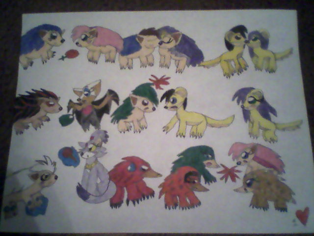 I want to do something different this year so I made the chars as real animals for this Valentine's Day. This is my first time ever drawing them like this so don't snap at me for their crappiness. Sonic X Amy, Jules X Queen Aleena, Arthur X Isabella, Shadow X Rouge, Manic and Ash fighting over Mina, Silver X Blaze and Shade, Master Emerald, Tikal and Sonia fighting over Knuckles.