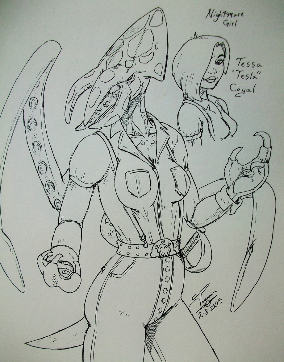 As I was walking this past weekend I had the idea for a squid based Nightmare Girl named Tessa Coyal, Tessa is a bit of a Pirate and sailor.