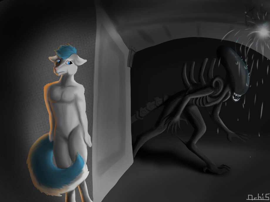My Skunk hiding from the dangerous Xenomorph... I hope Ripley comes to help me soon ;A;