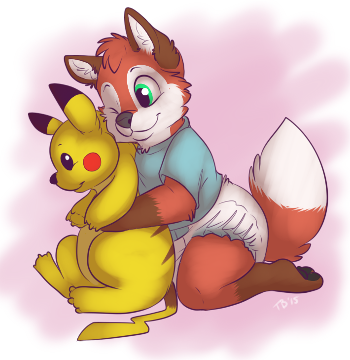 Today is it valentines day and when Foxys mother wake him this morning she did so whit a big hug and some kisses and sad happy valentine Foxy. This was Foxys first valentine so his mother explained that it was a day to show other persons around you how match you love them so Foxy run to his Pikachu plushy that he left in the crib during the morning diaper change and starting to give him allot of hugs and kisses and sad happy valentine my friend.