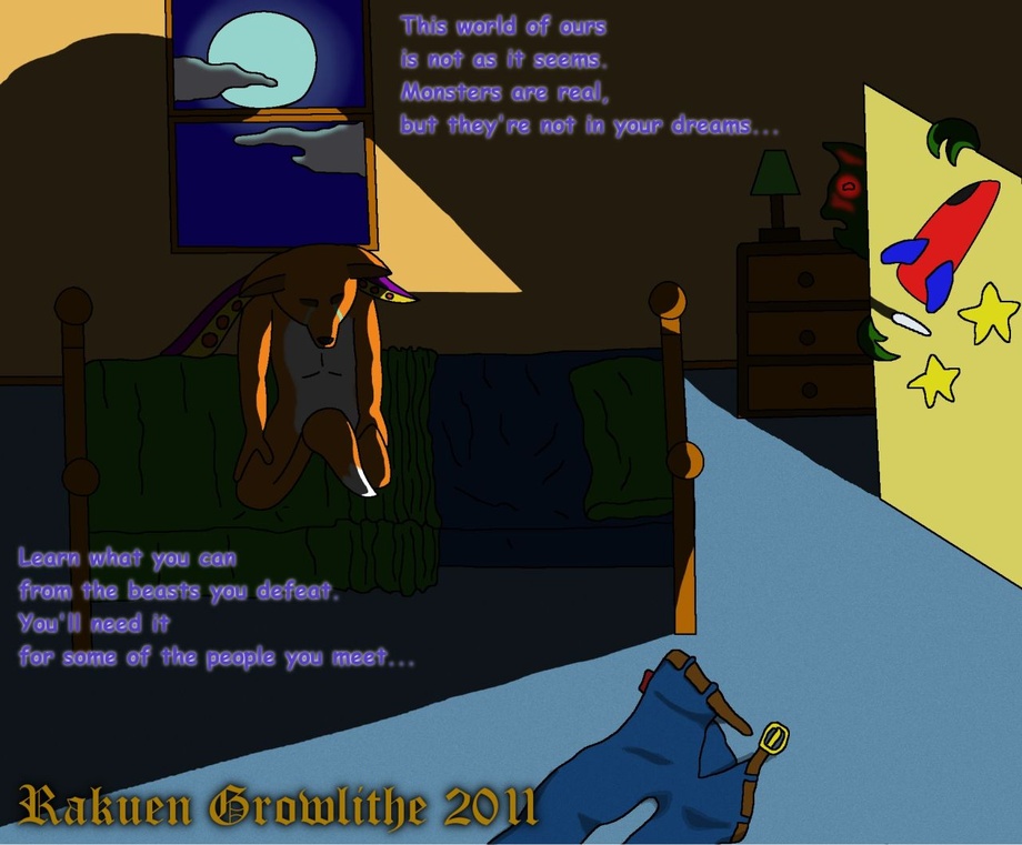 I'm rather glad with how this came out. The light showing up on the foxy and the glowing moon and monster eye. It could be a lot better but I still like it.