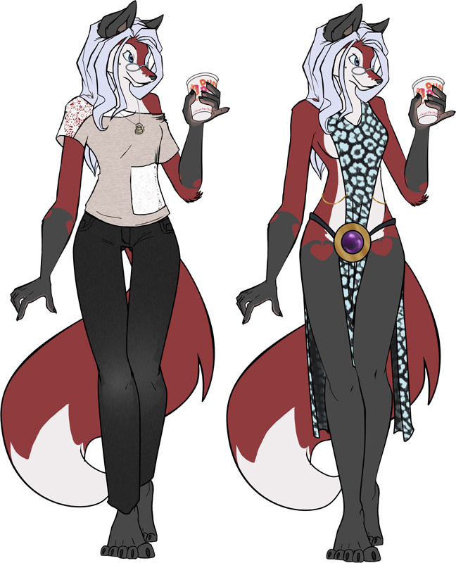 Just a couple examples of clothing references for my fursona. The neat thing about her is that she can be depicted in ANY attire or Any universe. The outfit on the left is one i own, the outfit on the right is one from an old picture.