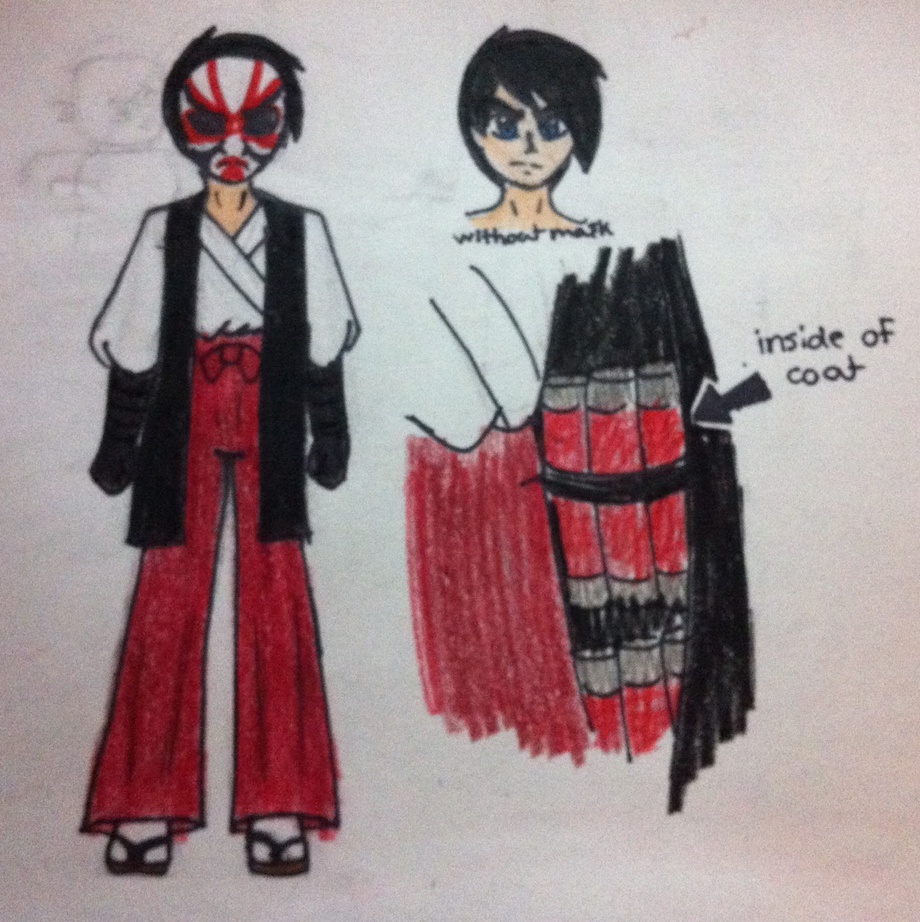 He hardly ever takes off his mask, he only does so around his sister when they are alone. And incase you're all wondering what type of mask it is, it's a kabuki mask :3