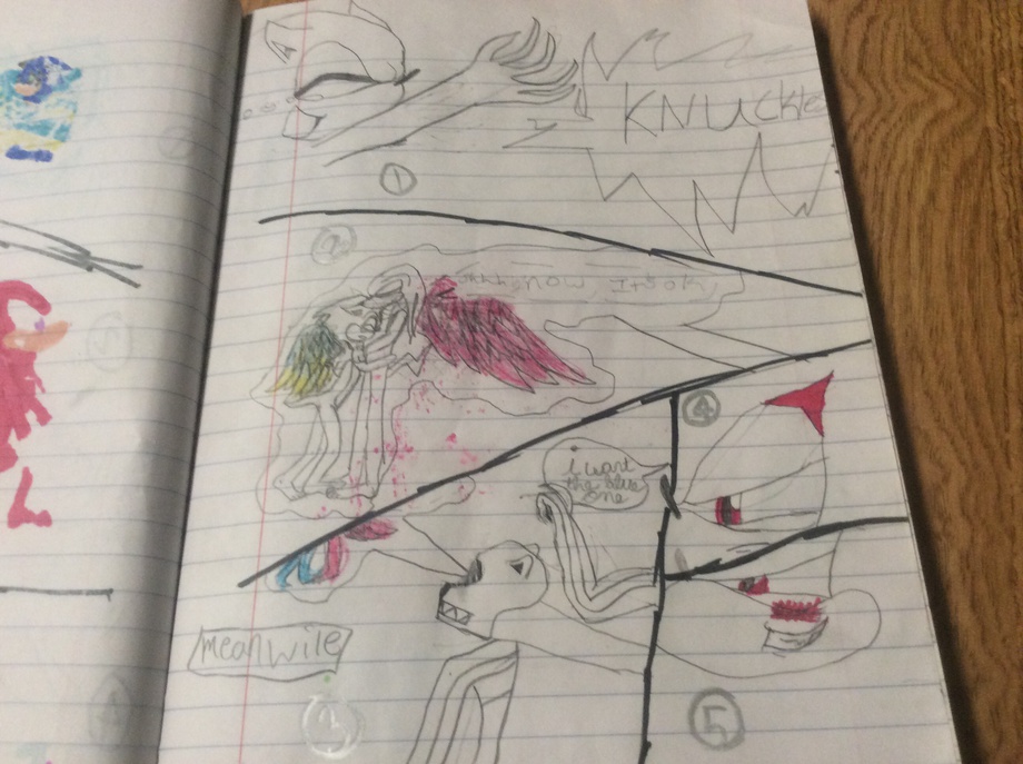 S: KNUCKLES!!!!! Kn:shh now it's ok *meanwhile in the underworld* ???: I want the blue one *smirk*