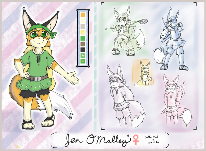 Grace did shoot a link to me, and I was just heading over to comment when I spotted your note. So thanks for the heads up, and I love what you've done here! Jen's just as cute as she can be, and I particularly like the two full body sketches, and the cheery, confident attitude she has in the right-hand sketch is simply perfect. Grace has been keeping me appraised of everything from the start, including what the two of you talked about this morning, and I couldn't be happier with how things have gone so far, and you've done a beautiful job of blending Jen's rabbit and fox features and thanks again for making sure I spotted this!