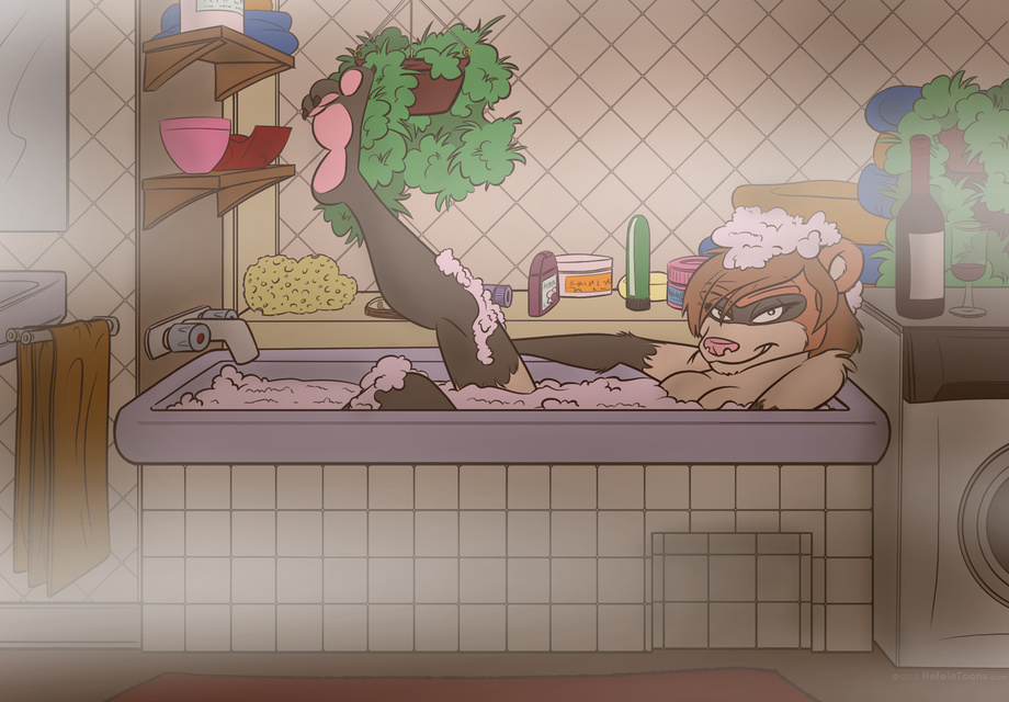 , showing his character Linda, a ferret girl from his awesome Transmission webcomic. Check it out at . He wanted a classic bathroom scene (nope, NOT the type of which features screeching violins, a guy dressed up as his mother, and bathroom curtains ripping xD), so here we go.