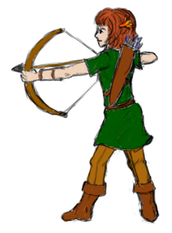 My archer/druid character Lily. She is friendly with animals and can communicate with them, and she can magically cause plants or fungi to grow. Among other nature-related powers, she can shape wood, living or dead, into any form. Varen, a mage who controls fire, air, earth, water, and darkness, can enhance her arrows during battle by adding elements to their tips.