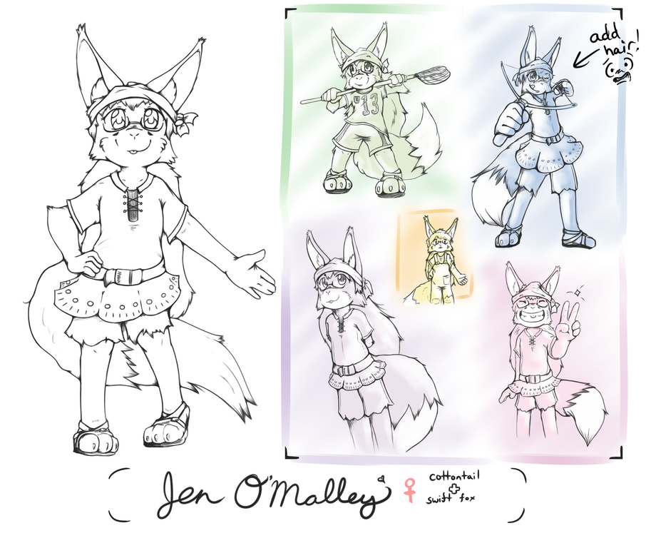 I don't have a lot to add to what Grace said, except to agree with her. You've done a beautiful job with our little Jen, and the range of attitudes and emotions in these sketches really do sum her up quite nicely. I like the ear tufts, too, and that's a detail I'd never have though of myself so, yes, thanks for the idea. The sketches are all very well done, like Grace said, and I particularly like how well they capture her rather childlike demeanor and give her a sort of essential innocence as well as making her look absolutely adorable. Thanks for posting these WIPs, and thanks, too, for all the work you've put into this!