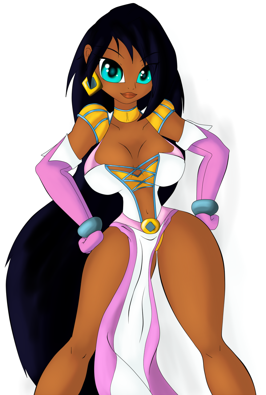 Taking Chel's skin tone and hair color. Powergirl's and Chel's skimpy sexy outfit. Finally most of Rapunzel's and Powergirl's outfit color.