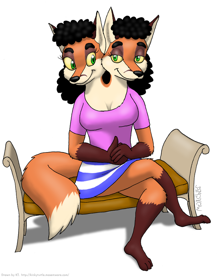 Here's Teleia posing for a portrait photo, fully clothed FOR ONCE. Wow! The only weird thing about zir is the two heads! Zie looks so... innocent.