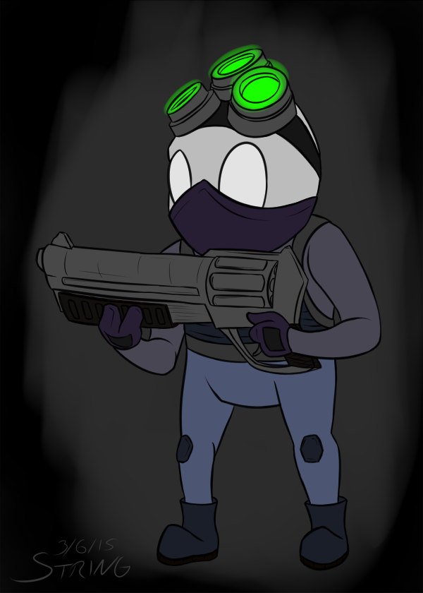 Just a little doodle from months ago that I decided to turn digital the other day. Sam Fisher-esque spy fella with a gun that's nearly bigger than he is! Think he forgot his silencer though.