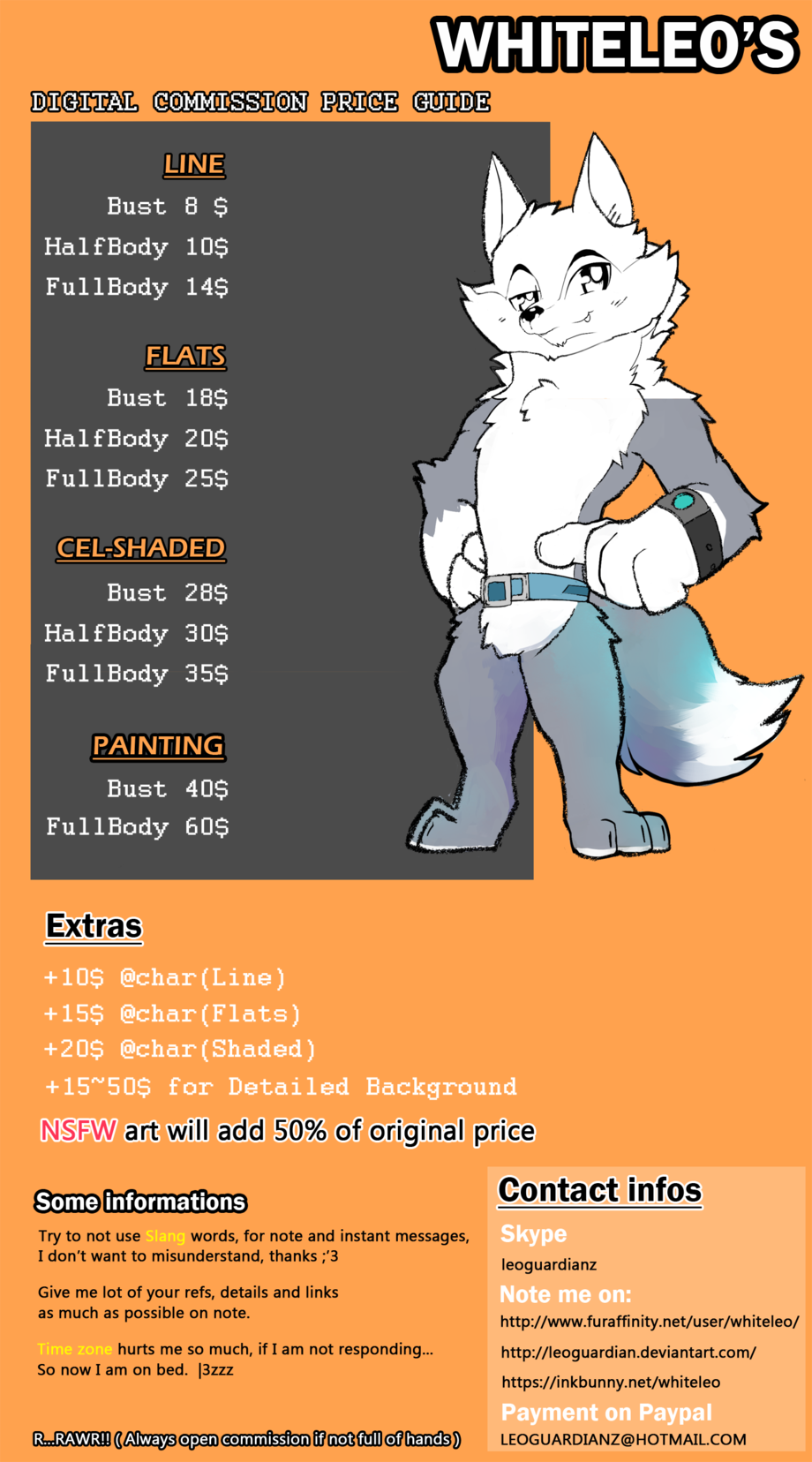 Hello bro ! New commission sheet! :3 These are my basic commissions, available as long as I am free to take commissions! For a commission type not seen on this list, message me :3
