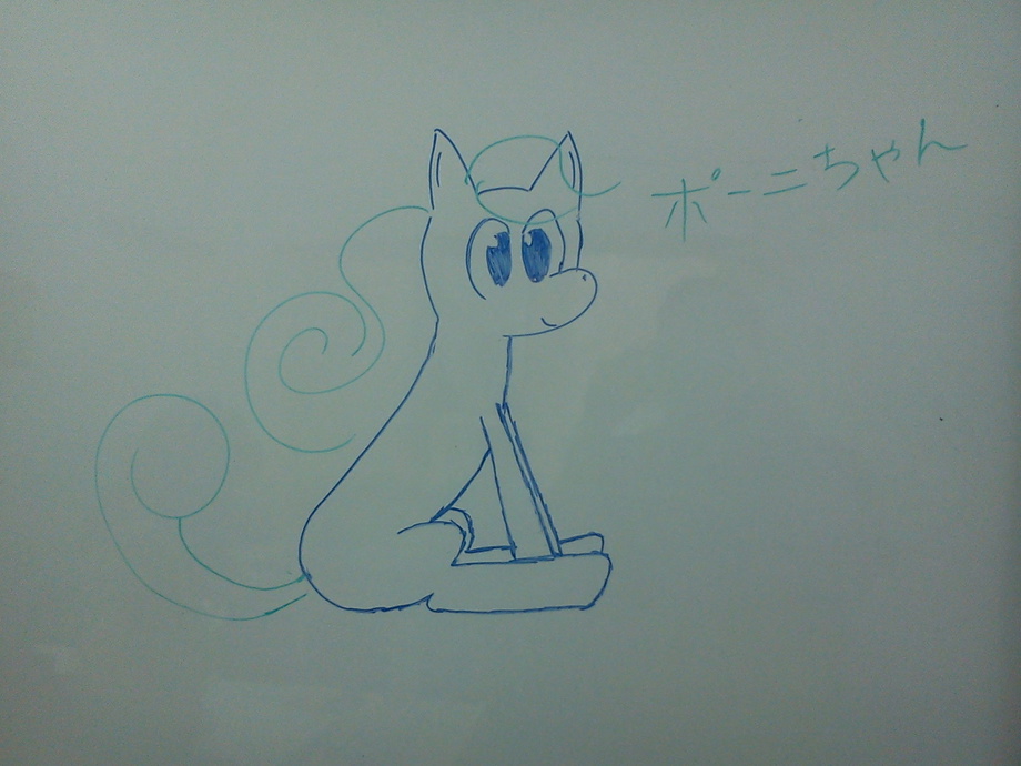Drew it while at japanese class, and the name is actually misspelled. It should be ポニーちゃん (pony-chan)