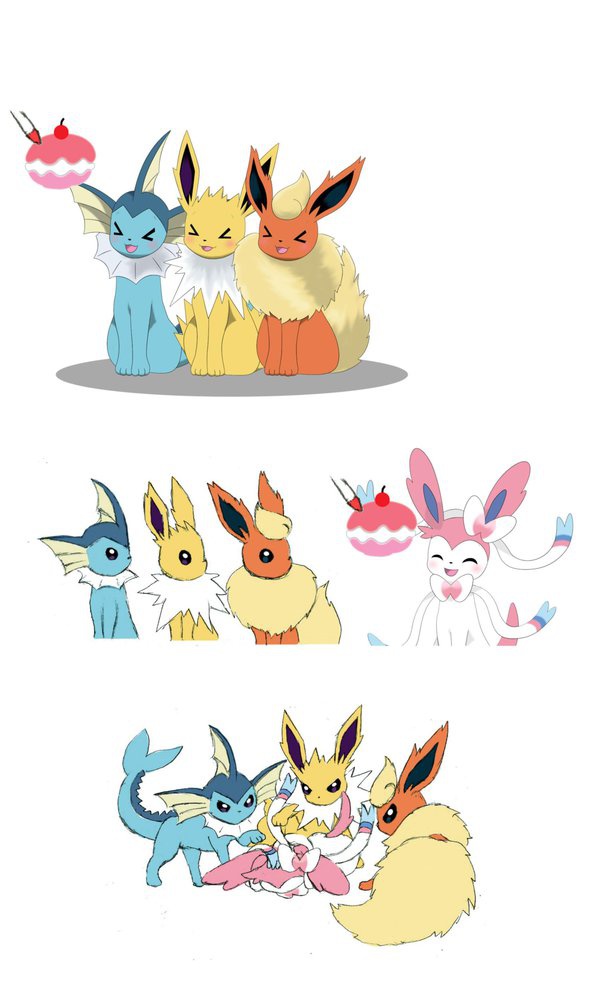 vaporeon, jolteon, flareon are happy.