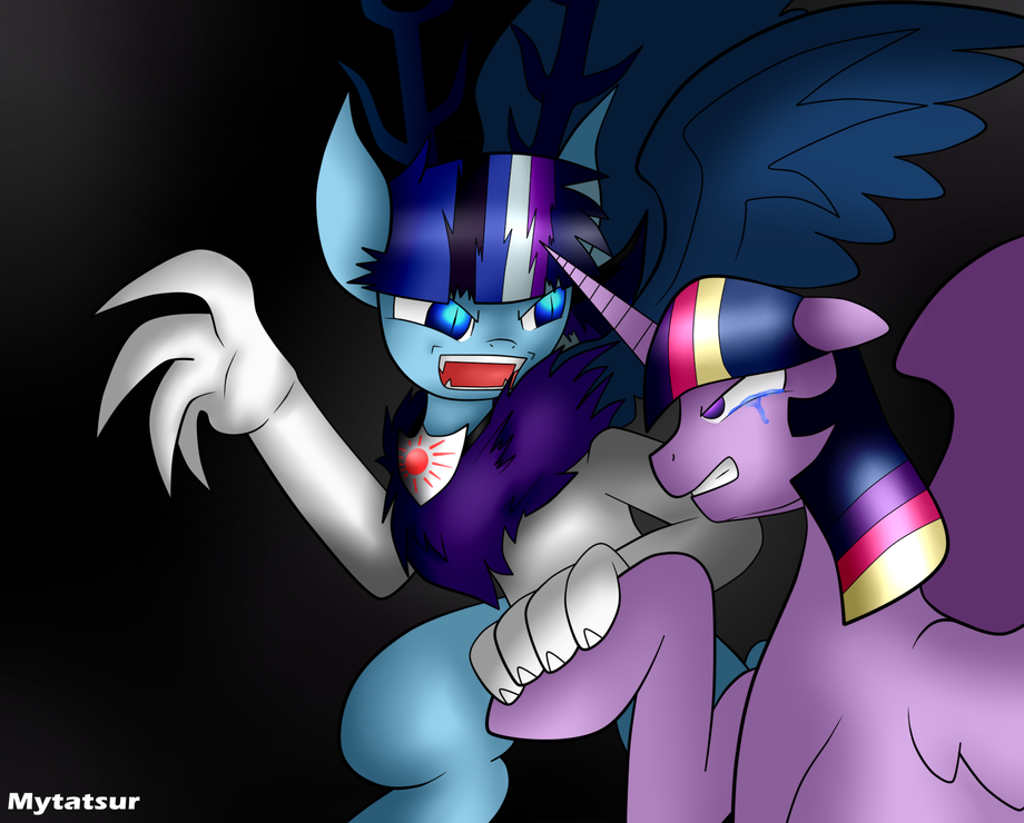 on fimfic of his/her OC Eclipse battling her mother Twilight Sparkle and if the OC looks familiar than it's because the father is Discord.enjoy ^ ^