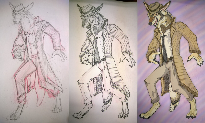 i just wanted to show the transition. this was drawn while i was visiting friends, took about three hours to do the pencil work then ink. it was a bit rushed but turned out ok enough for ink quality. the pose is decent but the anatomy is a bit off here and there though i am rusty so it is to be expected. the color was a simple under color with very minor shading. it was a bit tricky as i went under the original art and the quality of the image was limited as i snapped it from my phone not a nice scanner. though after a few tricks to make things stand out just a tad, it manages to hide enough of the flaws which are easily more visible at higher resolution sizes.