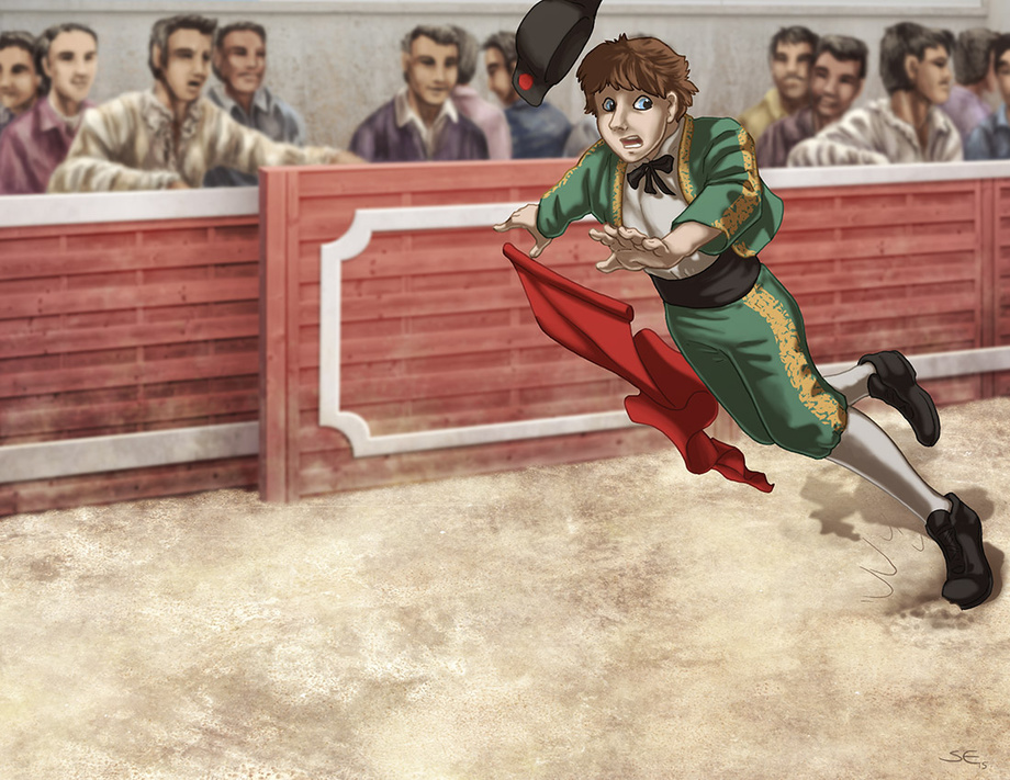 While vacationing in Spain, I take up bullfighting, but karma trips me up and punishes me by transforming me into one of them!