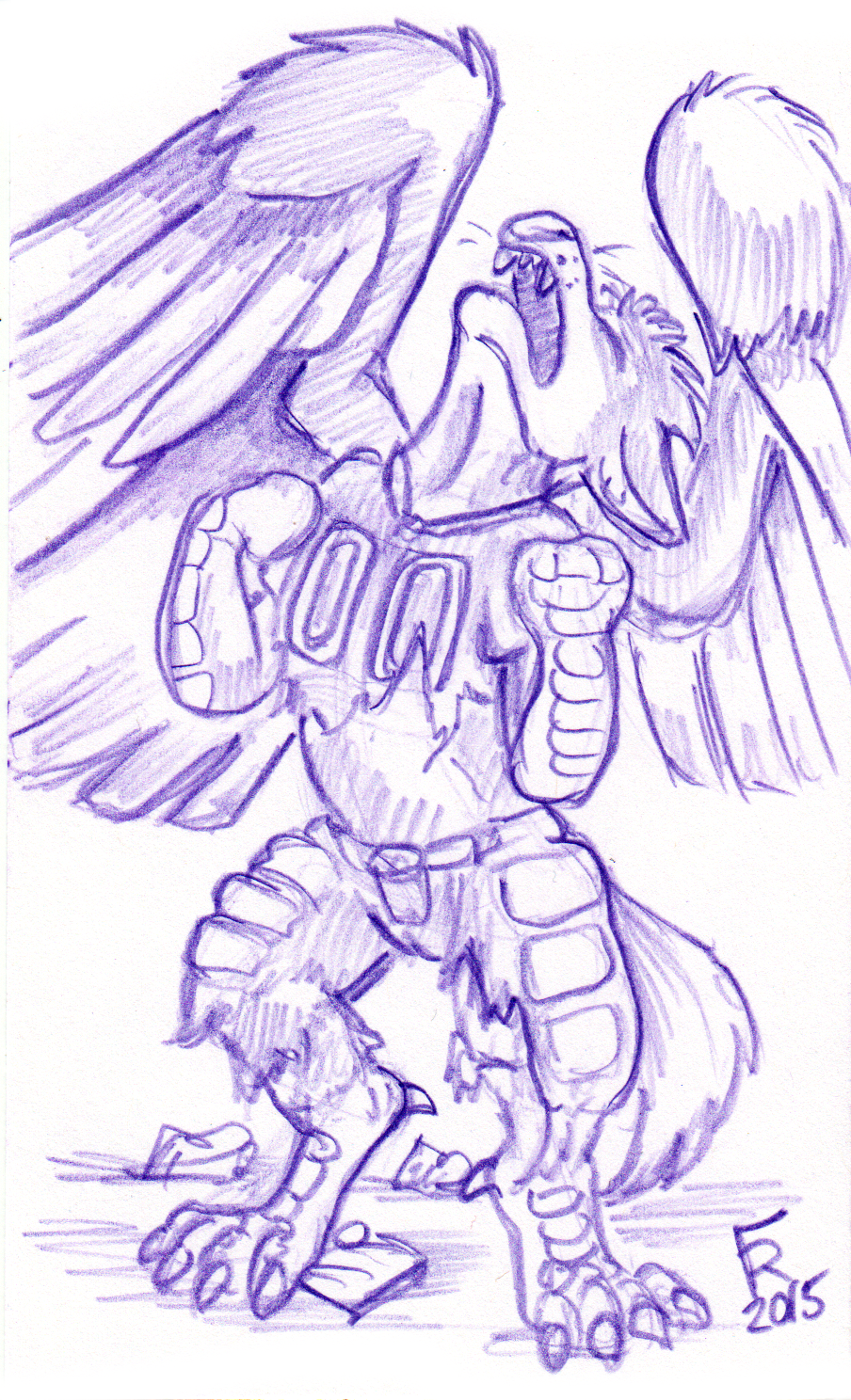 Just transforming into my hybrid eagle/wolf form as seen