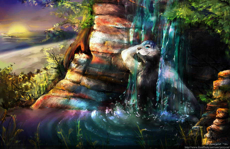Just catch a nice cool shower after a long hard day of hunting for feesh and oysters