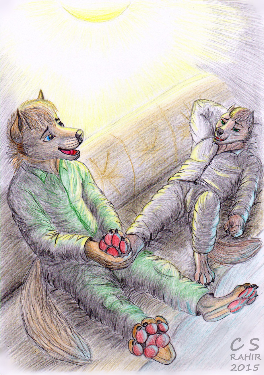 I wanted to do something with light-dark contrasts again, and also with some nice paw-feet ;-) Aren't they cute? Also, it's up to your interpretation if they are friends or lovers, although I would say that there is at least a passionate bromance going on XD
