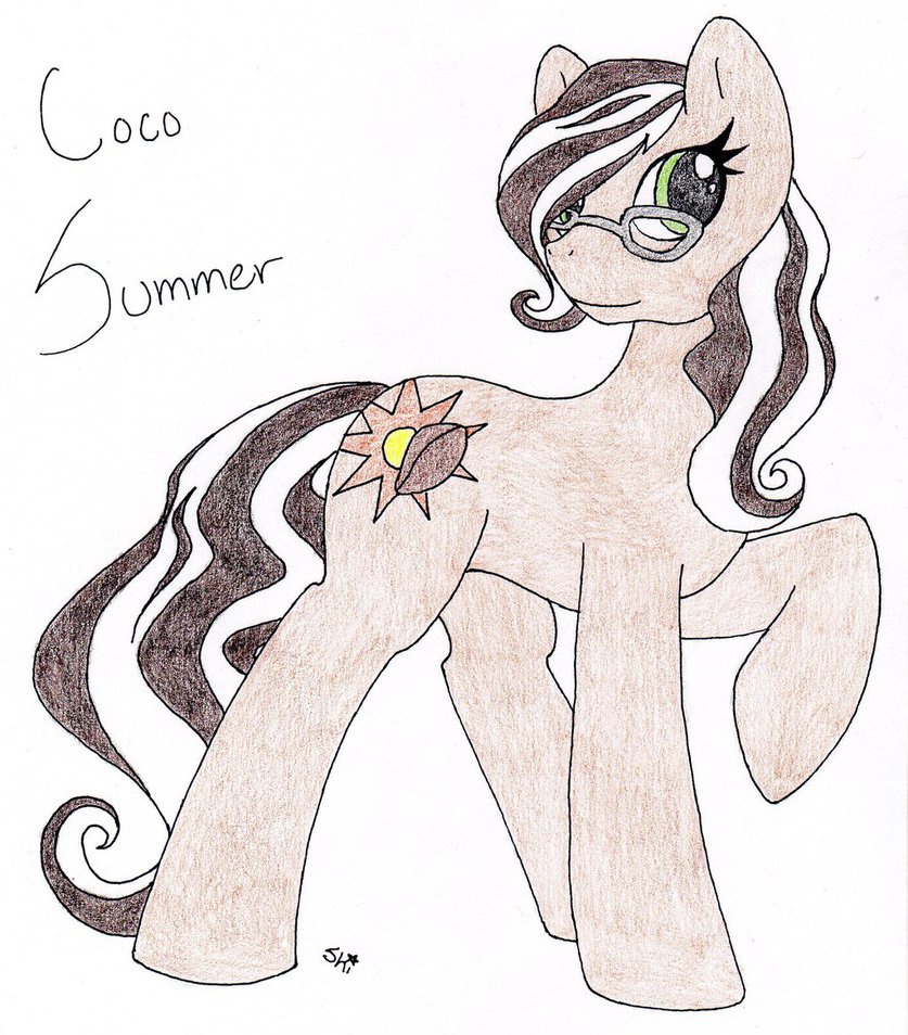 I have a total of 3 deviantART accounts, one for Sonic/Anthro, one for Pokemon, and one for my several Ponies. This happens to be one of them. Her name is Coco Summer and her talent is making chocolate.