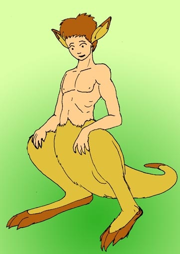 Behold a freshly transformed Rootyr (satyr Kangaroo). Mostly human from the waist up, kangaroo from the waist down. Hop!