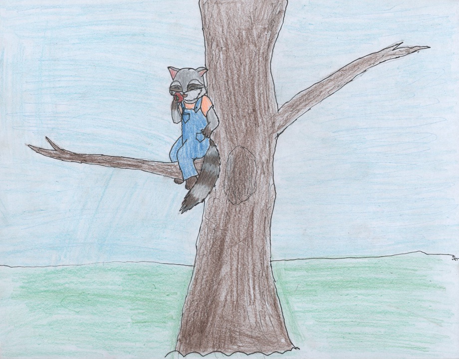 Aricub made a cute drawing of me in a tree, wearing my favorite overalls and munching on an apple. I am eight-years-old in this one, and am very happy with how my character came out. It is exactly how I see myself at this age. :) Thank you aricub. :)