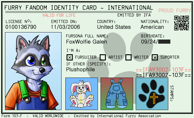 Here's my furry ID card. The template for making these was made by