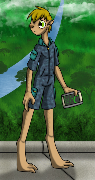 Meken themselves spanned their world. Having evolved to inhabit the border lands between the forest and plains of their world the Meken are tall with long limbs and grasping feet. Bipedalism is though to have arose in them as their intelligence developed and they began using their hands for carrying greater amounts of food and materials. Meken still retain superb climbing skills and are most comfortable relaxing in places elevated above the ground. Many of their communities even into their modern era remained in the trees though materials and building techniques changed as time and progress marched on and largely continues now as their entire species resides in space.