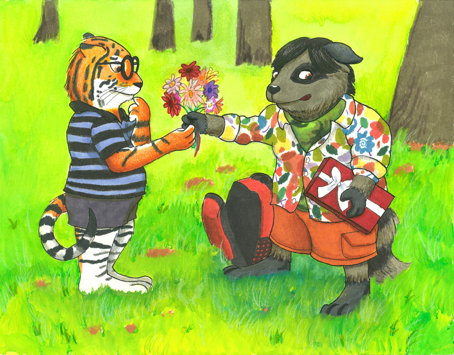 A commission for Fluffdance of FA. His/my character, Alex, has a crush on a tigerboy named Eski. Here, he makes his move, and then realizes he has to actually say something. O.O;;