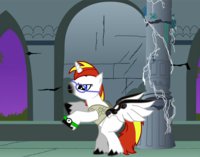 He had idly moved forward without realizing, and hit someone. It was a young gold-coated alicorn with a purple, blue and lilac mane and tail. Next to her was someone so close in shape and size that she could have been her twin sister, purple with a pink, blue and yellow mane and tail. ( http://aquaticneon.deviantart.com/art/Season-5-Princes... ) Princesses Gold Lily and Sterling. Sterling was the one rumored to marry BlueBlood. But both sounded upset at the moment, something that troubled the young colt.