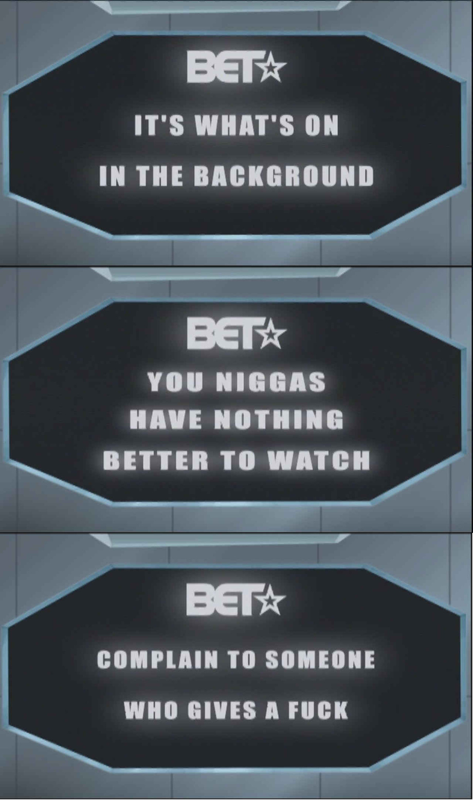 have lots of respect and adoration for The Boondocks... and as such, this comes from one of the episodes. funny shit this was, very funny shit.