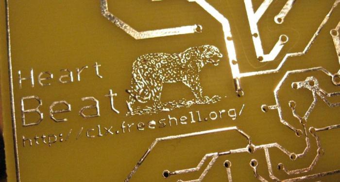 Time to posts things here too. I'll start by basically send the same things than on FA. So.. This is a jaguar picture etched on a printed circuit board i did for that project :