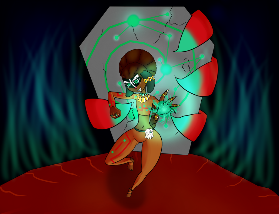 Here, Sonya demonstrates not one but two techniques. She adorns herself in the ritualistic wear and dances a feverish dance to call force her summon, and in her hand she weaves a curse into corporeal form so it may be fired as a bullet.