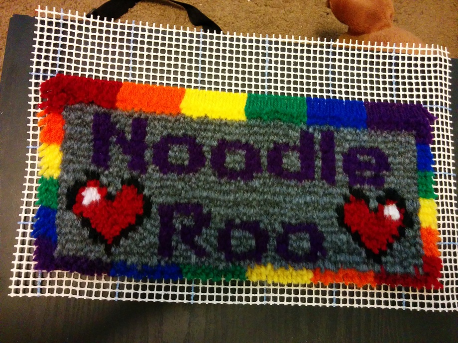 Did a name plate rug badge for myself. Will be start up commissions for these if people are interested. Took me about 6 hours to finish this piece. 14 inchs across and 7 inchs down, roughly 54 by 24 graph wise.